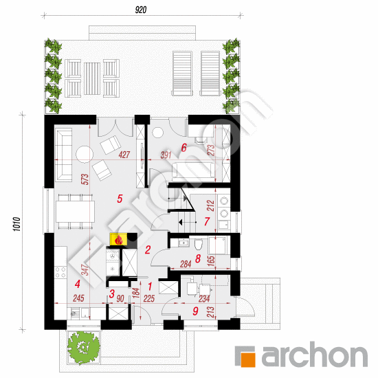 Rzut parteru - Dom w rododendronach 21 (NT)